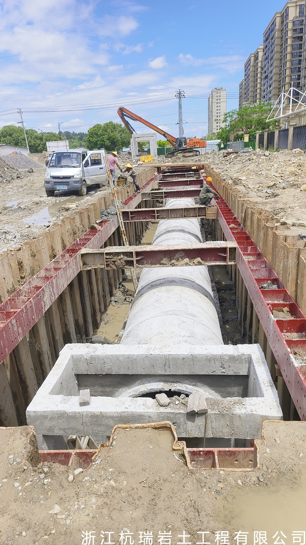 浙江杭瑞巖土工程有限公司, 成立于2016年,本公司是一家從事巖土設計、巖土監測的深基坑圍護的公司。公司主要承接打拔Pc工法樁Pc鋼管樁,Pc工法組合樁,板樁,打拔管樁,鋼便橋搭設以及圓管樁、拉森樁、貝雷架、型鋼、鐵板及路基板的租賃。公司有12米、14米、16米、18米等型號長度圓管樁30000余噸,有9米、12米、15米、18米等拉森鋼板樁10000余噸,450、470打樁機多臺。曾參與溫州地鐵S1線基坑圍護、甌江口大